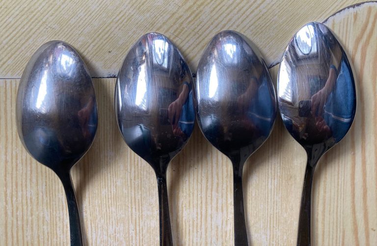 Abnutzung: Minderwertiges Metall kann mit der Zeit oxidieren oder eine metallische Note an das Wasser abgeben. Selbst hochreiner Edelstahl, wie er zum Beispiel für Besteck oder in Industrieanlagen verwendet wird. verändert sich mit der Zeit. Ich habe im Zuge des Nachkaufes von Esslöffeln mal die ursprünglich gekauften (mehr als 10 Jahre im Einsatz befindlichen) mit einem neuen Löffel verglichen. Auf dem Foto kann man schön sehen, wie glatt und glänzend die Oberfläche des neuen Löffels ist und wie feine Kratzer die Oberfläche der in Gebrauch befindlichen Löffel überziehen.
